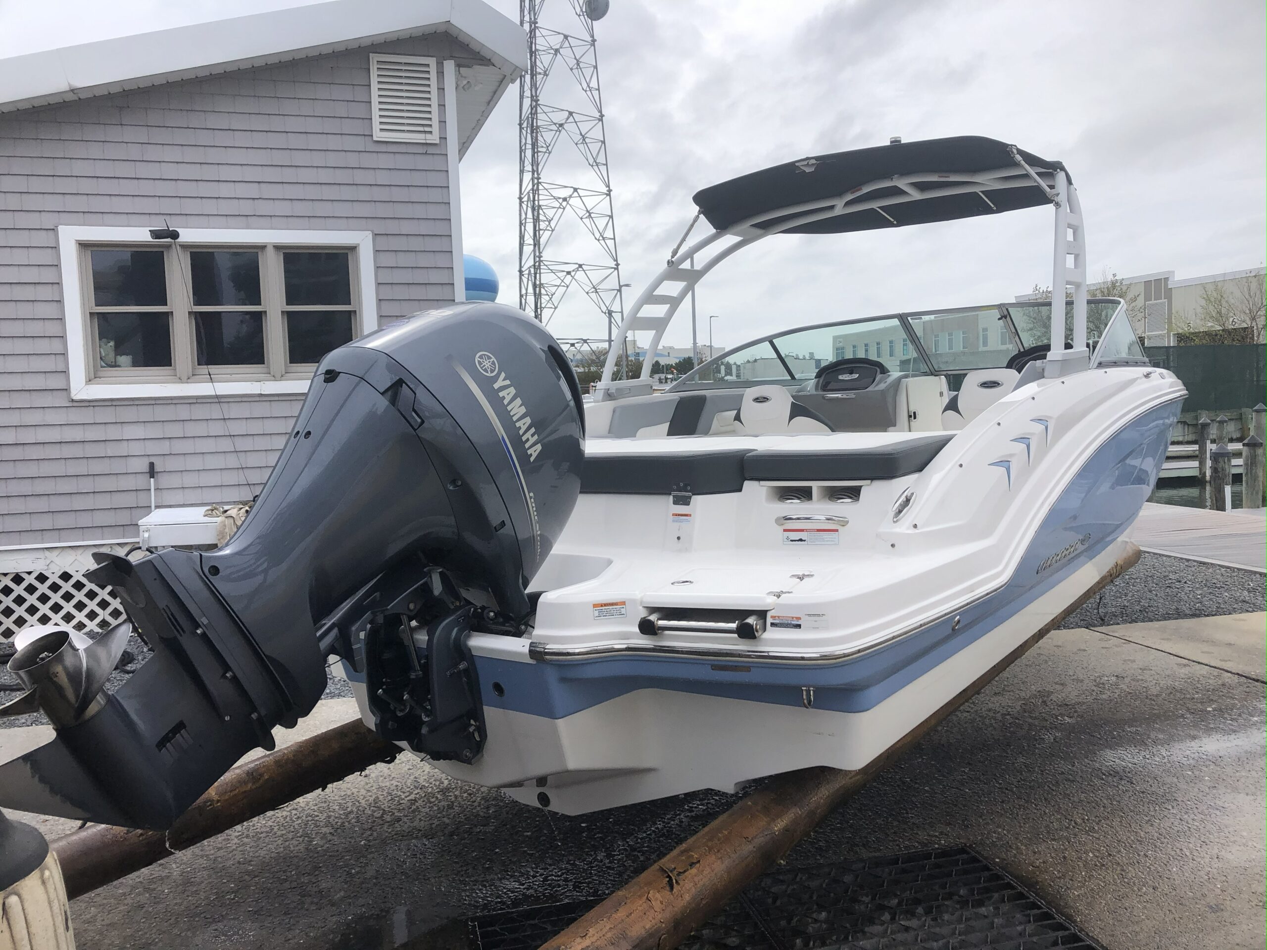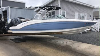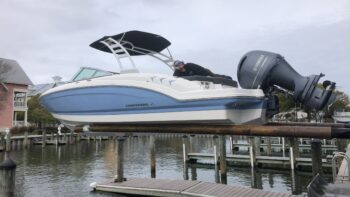2022 Chaparral 23 SSI OB powered by a Yamaha F200XB with 38 hours. Wide band Steel Blue. Optional equipment on board includes Sterling interior, white folding velocity arch tower, cockpit and bow covers, deluxe package, Simrad GO7, anchor, and dual battery setup. Trailer not included. Please call Advanced Marina at 410 723 2124 for more information.